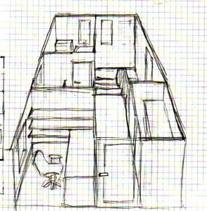 画像は2階へ上がってくるところの俯瞰イメージ。施主はこんなの書いちゃうくらい熱心なのだ。