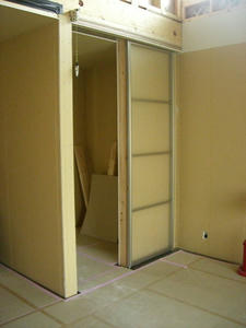 ここは基本的にはオープンにしているつもりですが、冷暖房を入れたときのことを考えてこれを付けました。値段、結構高いですが頑張りました。床は養生されて見ることはできません。