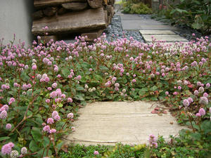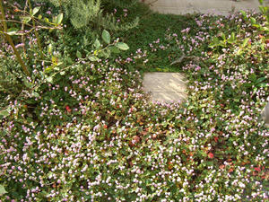 庭の入り口のグランドカバー(名前は忘れました)がかわいい花を咲かせています。