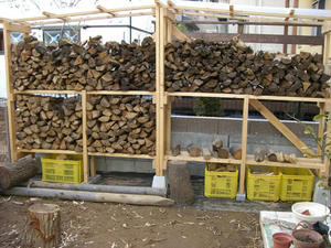 この海では波乗りは手も足も出ないので家へ戻って薪割りをすることにしました。まずは空いてしまった薪棚に薪を補充。今年焚ける薪はこの画像の分と、もう少しだけ別の場所に残っていますが暖かくなるまで足りるか少々不安…。