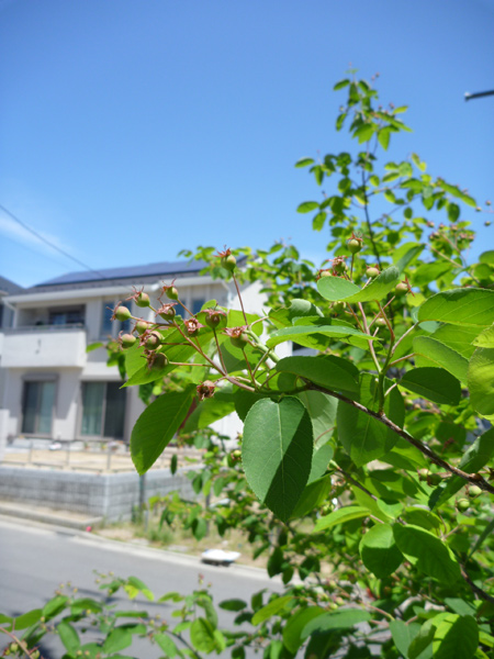 白いかわいい花がたくさん咲いていたジュンベリーには、実がたくさんついています。今年もたくさん収穫できそうで楽しみです。