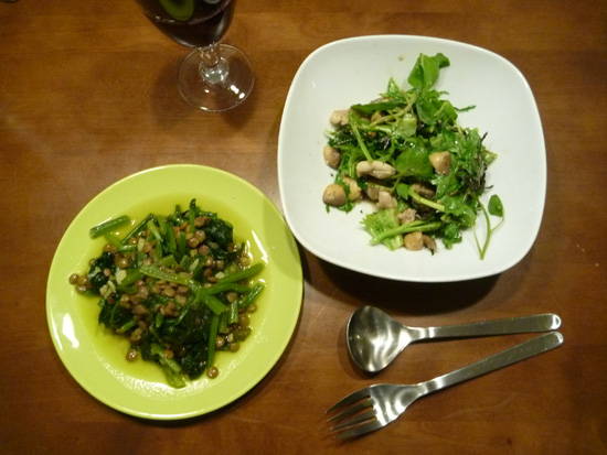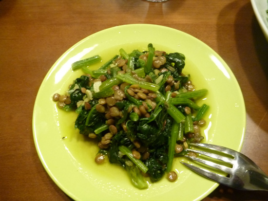ホウレンソウとレンズ豆のオリーブオイル煮