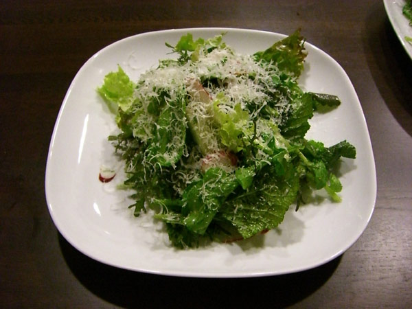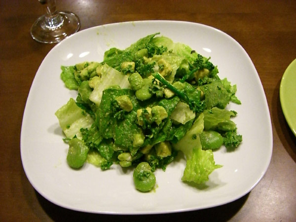 最後はグリーンサラダ。ロメインレタス、ソラマメ、アヴォカド。シーザースサラダ風。