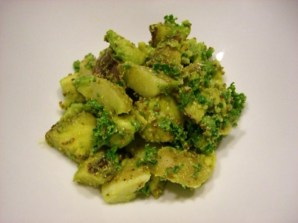 ポテトサラダ。じゃがいも、アヴォカド、パセリ。粒々マスタードで味付け。