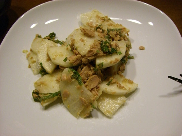 カブ、しそ、ツナ。味付けは味噌+ぽん酢かな?