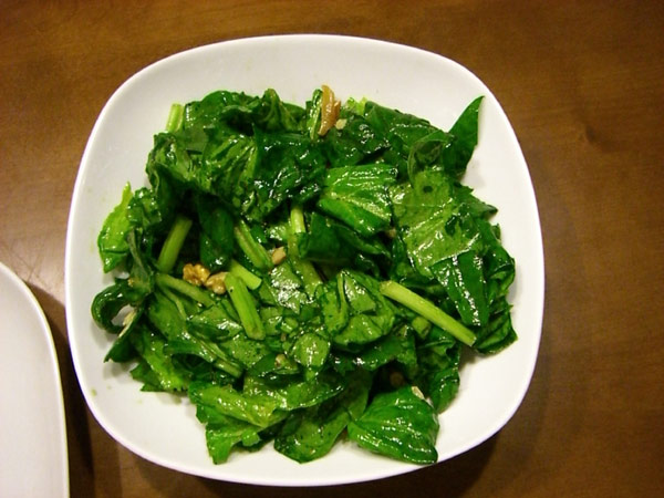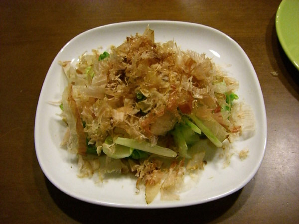 和風。軽く茹でた山東菜(べか菜)かつお節。しょうゆ味。