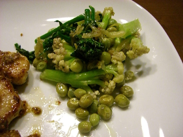 えんどう豆、カリフラワー、ブロッコリー、暖かいサラダ