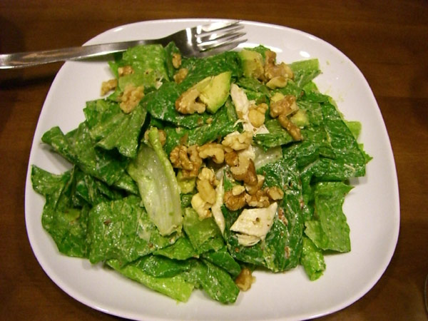 ロメインレタス、アボカド、くるみ、シーザースサラダ風。