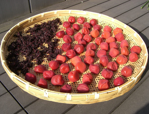 もう先週のことになりますが、お盆の15日を迎えてようやく晴れが続きそうな天気になったので、ようやく梅干の土用干しをすることができました。長い時間赤シソと一緒に漬けていたのできれいに赤くなってます。