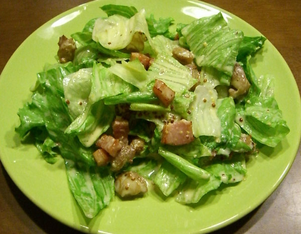 本当は、卵、オリーブオイル、レモン、塩、コショウ、チーズでサラダをトスしながらマヨネーズを作る理屈で作っちゃうサラダなんですが、このやり方で十分それらしくなります。お試し!