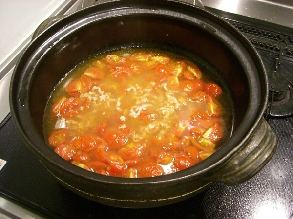 庭ではトマトとシシトウ、ピーマンがまだ取れています。さすがにそろそろ終わりですが、トマトが大量にあるのでトマトでお鍋を作ってみました。レシピは思いつきです。