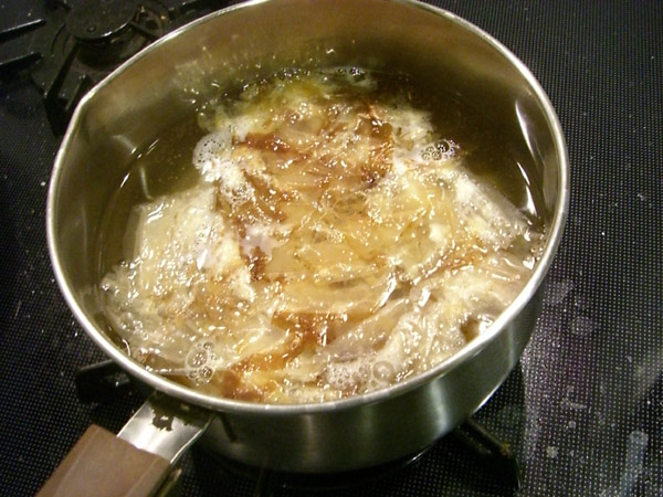 レンズマメは6~7分茹でてインゲンと一緒に冷まします。マメは茹で時間で硬さを調節します。6~7分は硬め、歯ごたえがある硬さです。10分くらいで柔らかめ、それ以上だと形が無くなってきます。