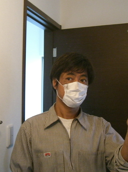 初登場KURIさん、顔にもススが…。汗をぬぐうと黒くなります。写真じゃわかりませんがシャツも黒く汚れてます。汚れないもっと良い方法はないのかしら?