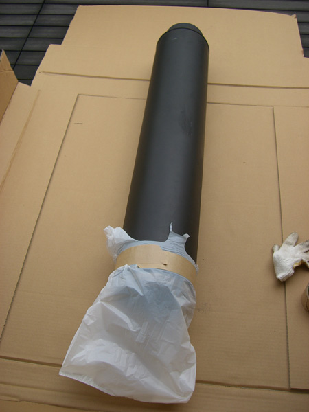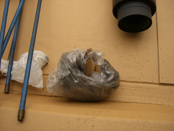 無事終了(本当はあんまり無事じゃない)ビニールの中の黒いのがススです。まわりに飛び散ってます。