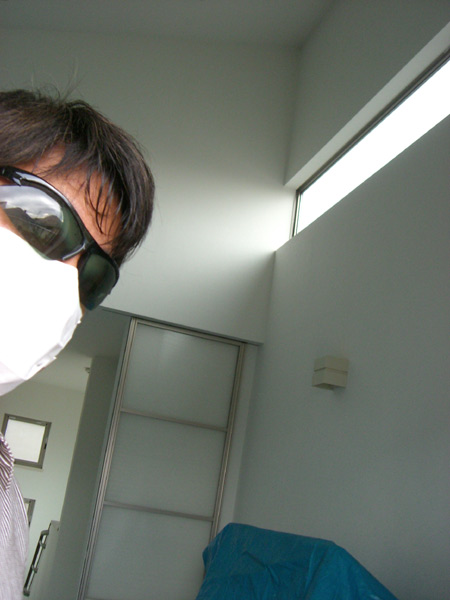 まずはブルーシートで部屋を養生。どんなに気をつけてやってもススが舞ってしまいます。去年は白いソファーに黒いススが点々となってしまって掃除が大変だったので、今年はきちんと覆います。