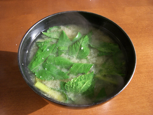 味噌汁の具は明日葉。