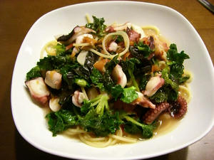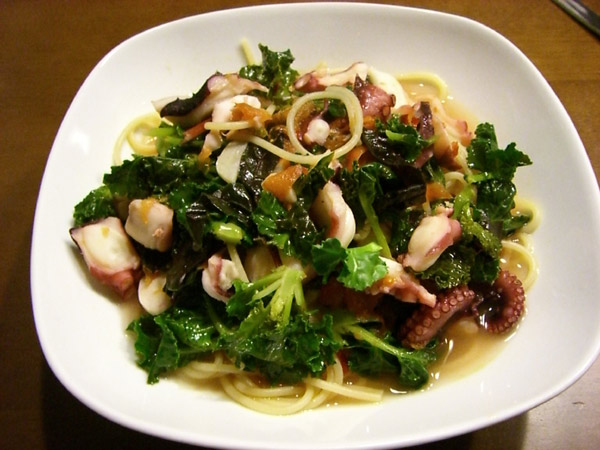 タコとトマトとプチヴェールのパスタです。なかなかイケます。