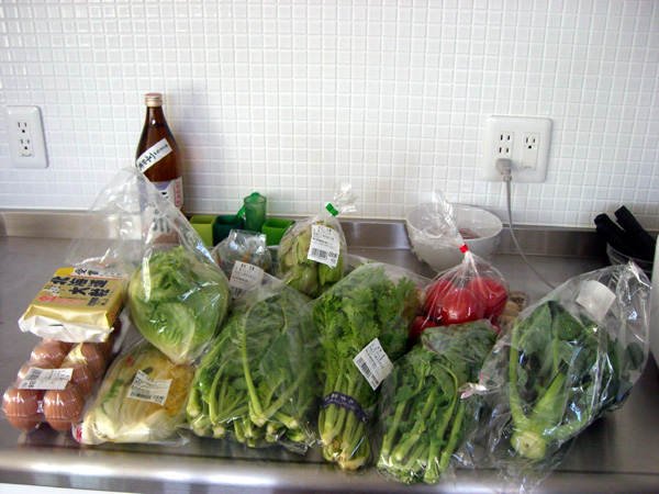 昨日は久しぶりの休日。波は無いので海へは行きませんでした。朝から軽くランニングがてら、農協のオープン時間に合わせて買い物をしてきました。すべて地元で作られ、取れたものです。左から、卵、納豆、昆布と塩だけで漬けた白菜漬け、レタス、かつお菜、わさび菜、菜の花、ブロッコリー、後ろへ行って、茗荷、ふきのとう、長ネギ、トマトです。2.000円くらいかな~?スーパーとは一パックに入っている量が違う(多い)のでかなり安いと思います。