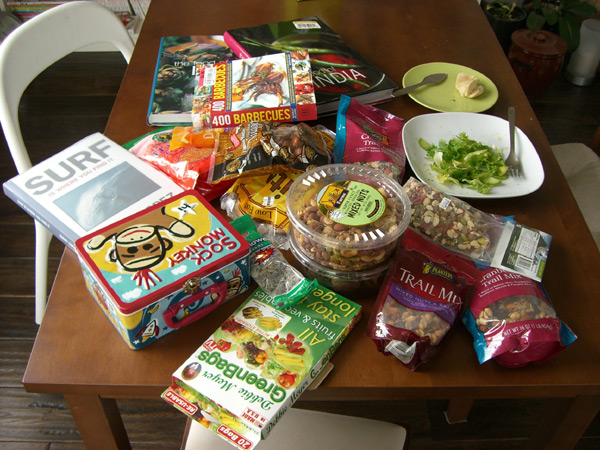 ナッツ類はオーガニックで無塩のものはなかなか日本では手に入らないし、手に入ったとしても法外に高いのでいつもたくさん買ってきてもらいます。朝ごはんのパンケーキに使ったり、サラダに使ったり使い道はたくさんです。SOCK MONCKEYはブリキでできたランチボックス。TAMAさんはなぜかこの古臭いランチボックスが昔から好きです(いろんなデザインがあって、コレクションしている人もいます)