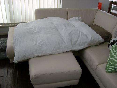 バレンタインデーの朝からTAMAさんがインフルエンザA型を発症してしまったため家庭内別居状態が続いています。リビングでの寝心地も悪くありません(笑)