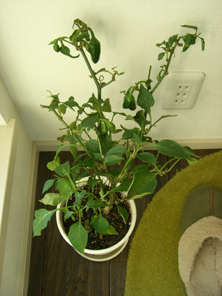 庭から鉢上げしたハラペーニョ。部屋は暖かいので元気に実を付けてくれています。