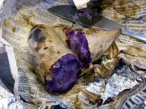 焼き芋です。種子島のムラサキイモです。ストーブで焼くと、とってもオイシイ(笑)