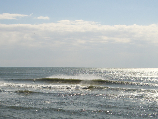 サーフィンに適した波には、風向き、海底の地形、うねりの向き、潮の満ち干きなどたくさんの要素が影響します。それらの要素がすべて良い方向へ向かうと初めてサーフィンに適した波になるのです。なかなか難しいものなのです。