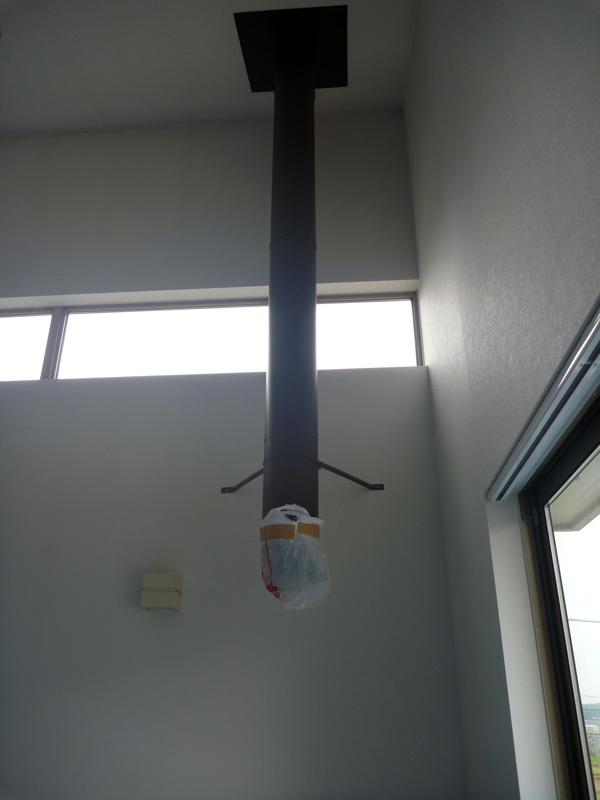 2.室内の煙突を外し、ビニール袋を取り付ける(下の写真)
