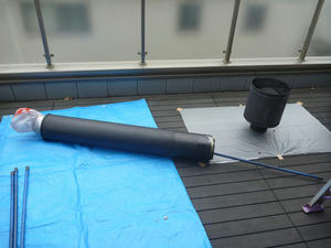 1.ベランダ 外した煙突とトップを置く場所を養生する。
