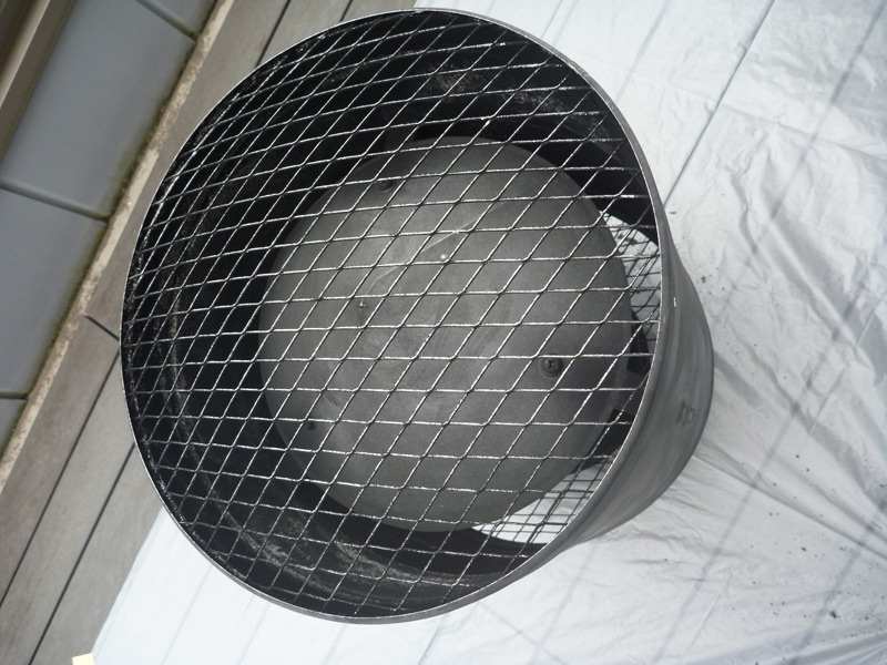 8.屋根に登って、きれいになった煙突トップを取り付ける。