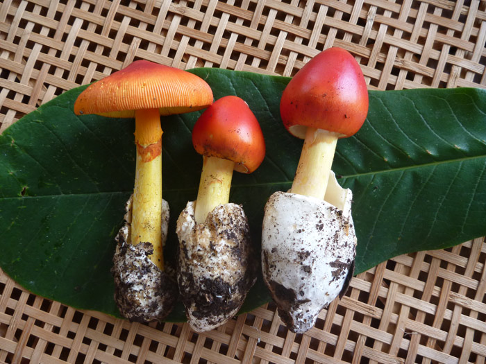 真っ赤で毒々しい色ですが、タマゴタケという食用のきのこです。