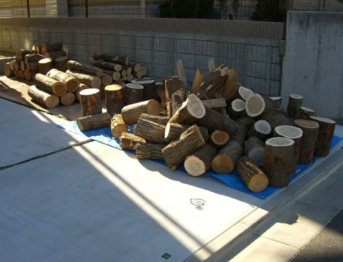 二時間ちょっとの成果。こいつをこれから斧で割って来冬まで乾燥させます。