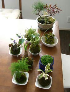 最近、我が家で増殖中のコケ玉盆栽。毎日スプレーで水をかけては眺めてます。