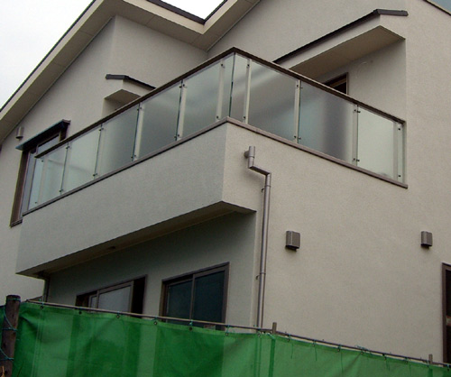 2階テラスの手すりがつきました。外から見ると人がいるのがわかるくらいには透けて見えてしまいますが、いいんじゃないでしょうか。