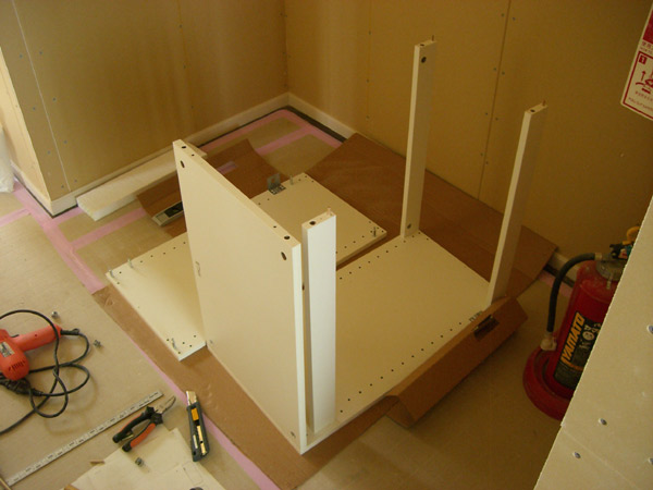結局作業はここでストップ。明日ちょうどIKEAへ足りないパーツを買いに行く予定だったのでとりあえず不良ということで、このまま持っていって交換していただくことになりました。キッチンのキャビネットと同じつなぎ方なので、間違えてはいないはずですが不良なのかなあ?