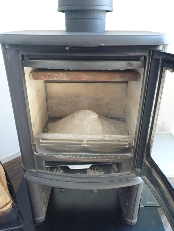 前回の記事で一応のところ、煙突も掃除したのであとは寒くなるのを待つばかりです。シーズンオフの間、灰をきれいに出して掃除しておいたストーブの中に一袋とっておいた去年の灰を戻します。
