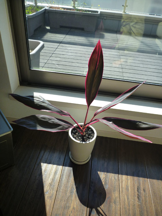 女房がもらってきた花束を花瓶に生けていたら、この葉っぱだけが根がでてきたので鉢に植えてみました。なんていう名前なの?形も色もきれいです。