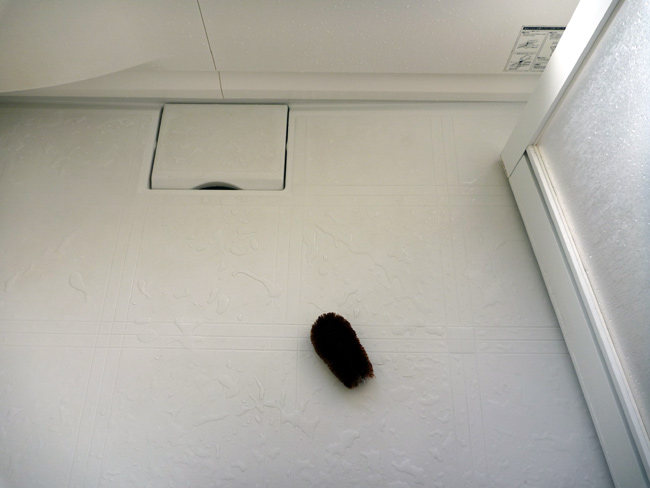 使用後のブラシは汚れているのでバケツなどに入れて周囲を汚さないように外へ持っていって洗います。ばっちいです。