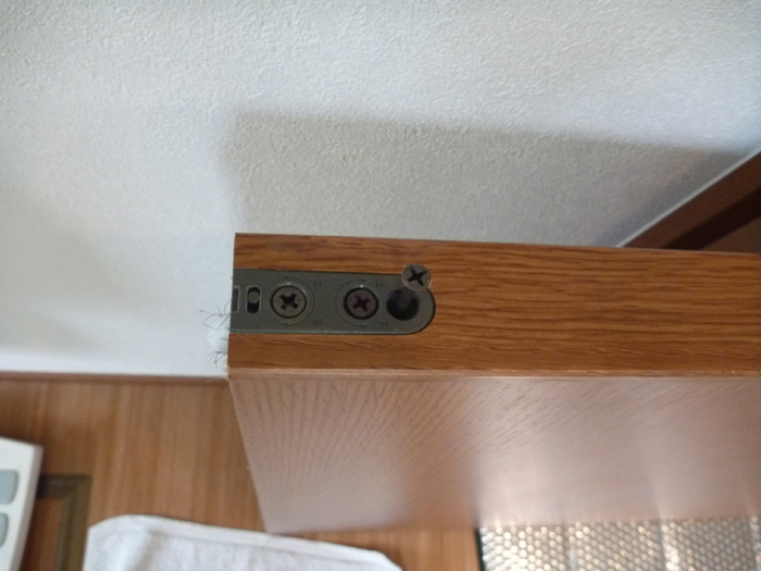 そこで引き戸を外し横にして戸車を外してみました。飛び出しているネジ1本で取り付けられていて簡単に外せました。