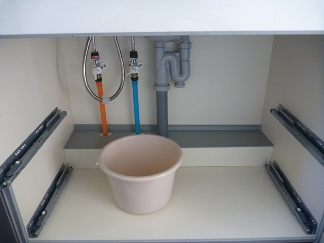排水パイプをしっかり接続して水漏れが無いことを確認してから、外した引き出しを再び戻します。