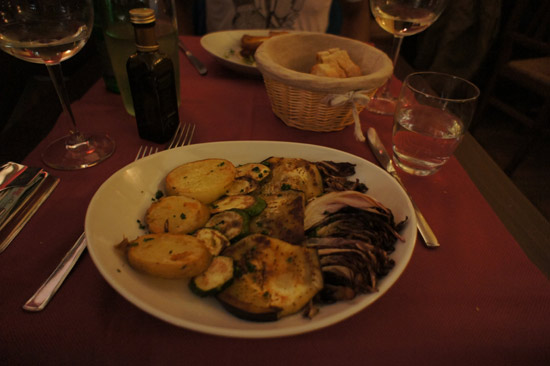 イタリア野菜のグリル。シンプルに焼いたものにオリーブオイルと塩をかけていただきます。