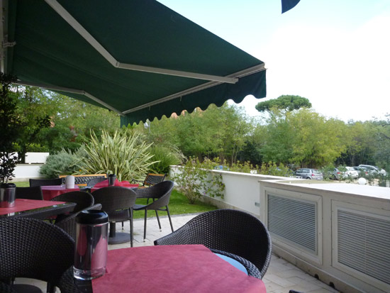 街中のホテルではこの緑は望めません。ここで朝ごはんを食べていました。