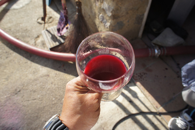 ノリで適当に相槌をうっているとグラスにたっぷり醸造中のワインを飲ませてくれました。