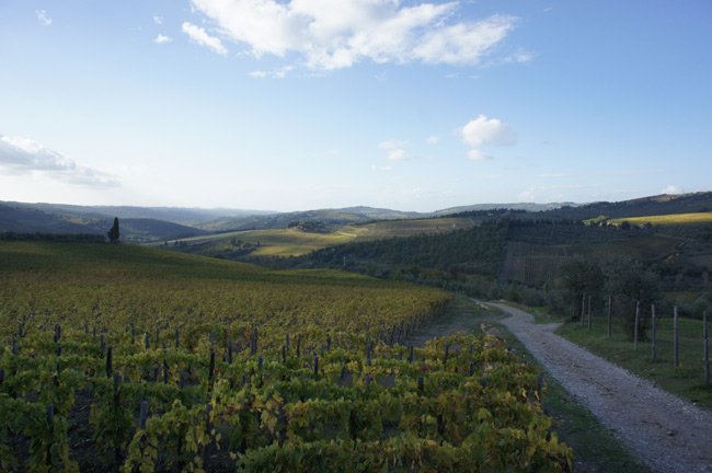 周囲は一面のブドウ畑とオリーブ畑。それもそのはず、キャンティワインの産地でもあるトスカーナのキャンティ地方です。