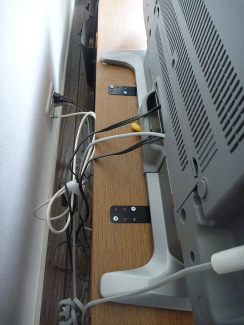 液晶テレビを固定するのを忘れていましたが幸い倒れることはありませんでした。転倒防止金具でテレビ台にしっかり固定しました。
