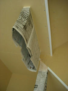 後悔しようがなにしようが途中で止める訳にはいかないので、もう二時間半、天井に手を伸ばし、床に這いつくばってようやく完成。刷毛塗りの部分は無理やり厚塗りをしたので、南の島の安宿のペンキを厚く塗りすぎた壁みたいになりましたが(判るかな~?この例え。)、ムラもそれほど目立たず満足の仕上がりです。二度塗りすればプロもビックリ!の仕上がりになるのは判っているのですが、身体がイヤイヤをしているのでここまでで許してやることにしました。
