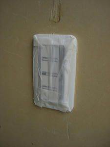 まずはペンキを付けたくない部分をマスキングしていきます。これをきちんとやらないと仕上げがダメダメになるので丁寧に。