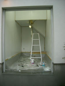 マスキングで午前中は終了。昼飯休憩後ペンキ塗りに取り掛かります。